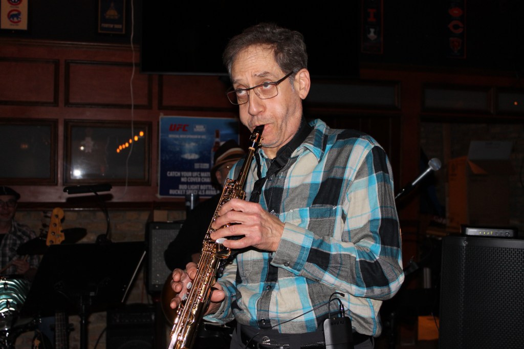 Dennis Sagel, media coordinator for WZRD Chicago 88.3 FM enjoys the bands at Martyr’s on May 4, 2024. (Photo by C. Schandelmeier)