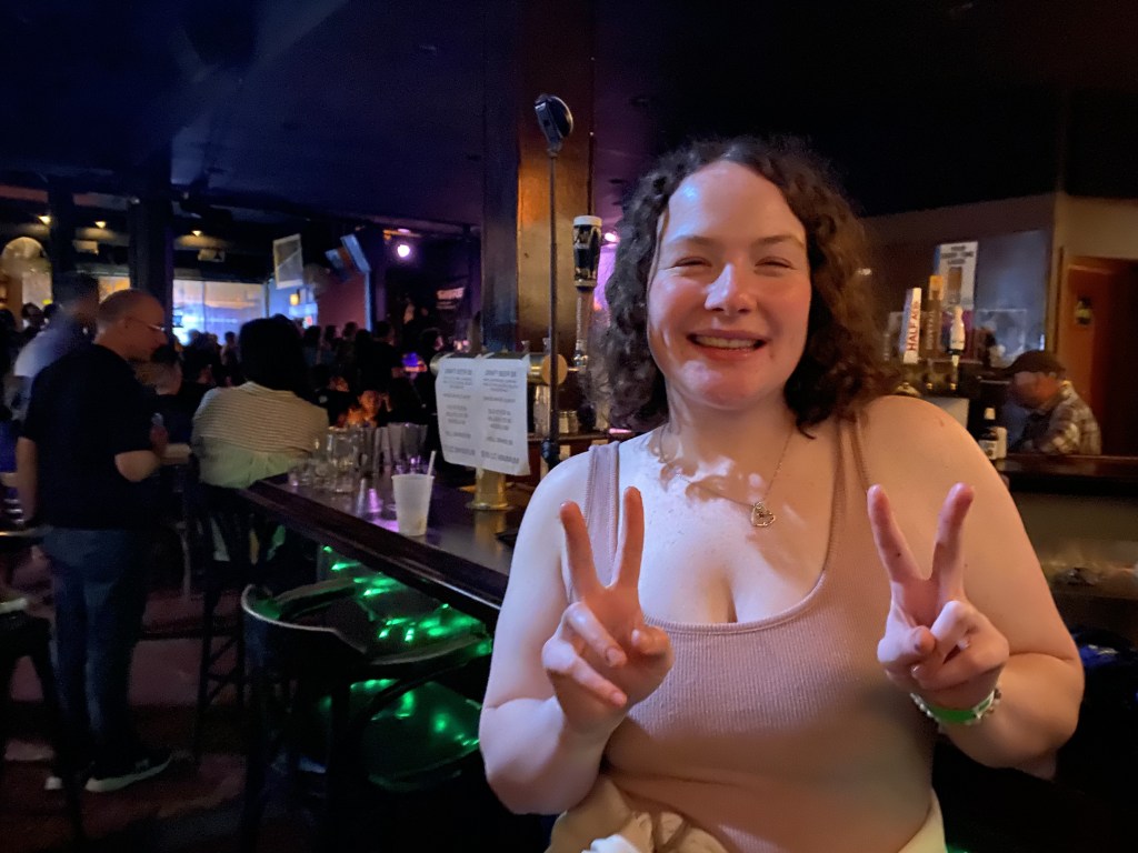 She flashed her dark eyes, flipped her hair, and stood strong in her identity as a trans woman, artist, and storyteller.