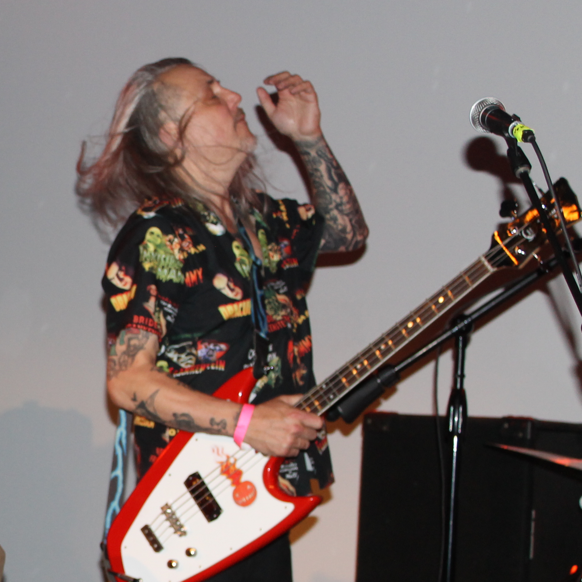 Robert Meehan, lead screamer and Rich Bastard on bass performing their first gig together since the early 1980’s at WZRD’s 50th anniversary event at Martyr’s, 3855 N. Lincoln in Chicago. (Photo by C. Schandelmeier)
