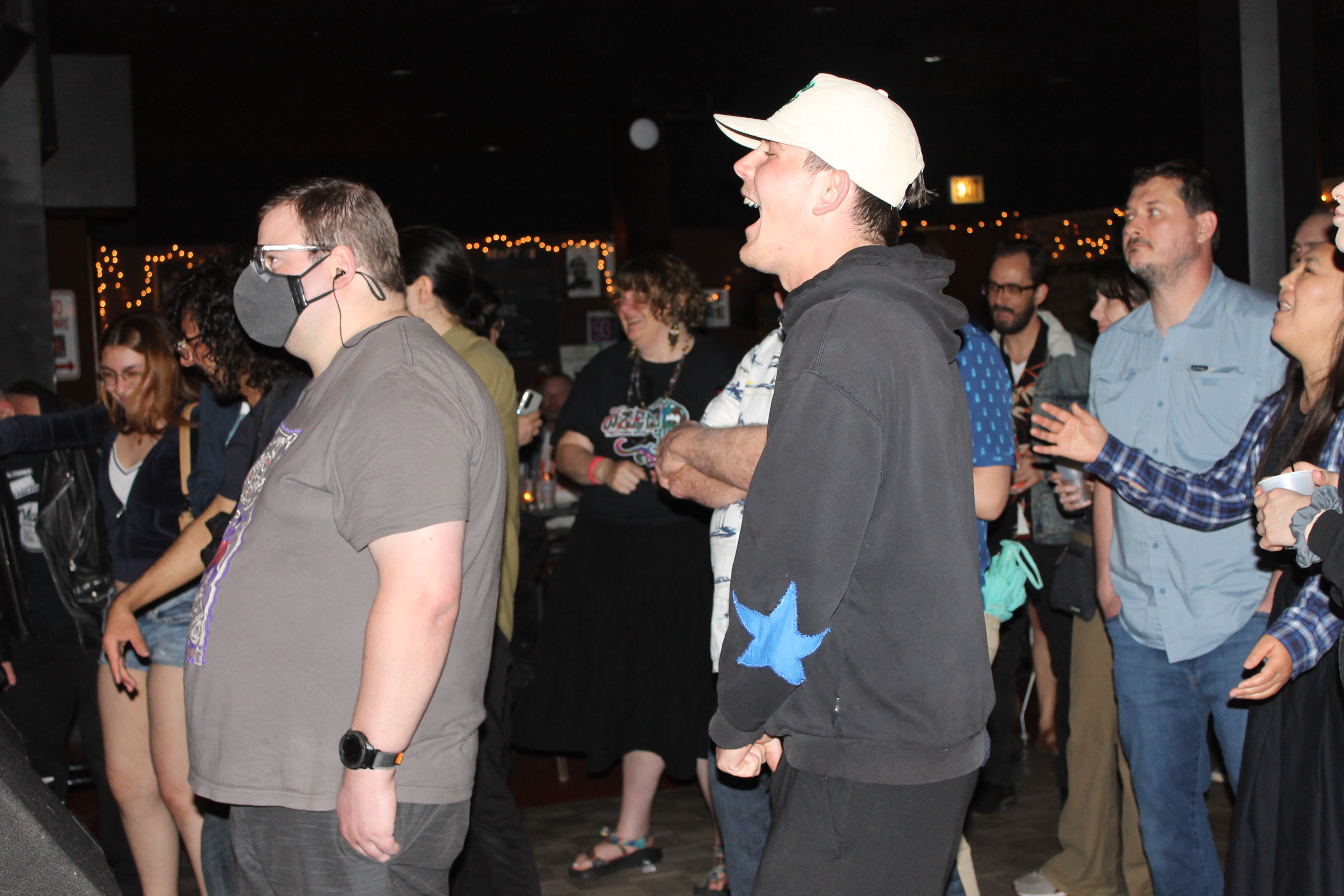 The audience sings along with Silver Abuse whose disparaging original lyrics included a parody of conservative republican governor “Ron Santo.” (Photo by C. Schandelmeier)
