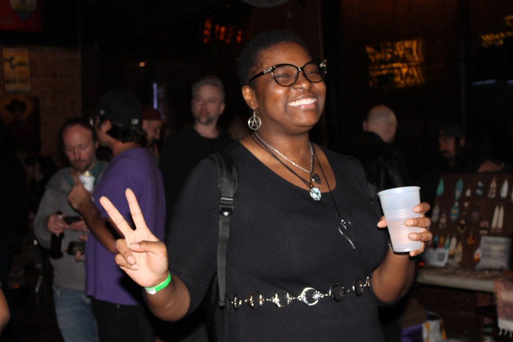 Andrea Change, Executive Director of the Guild Complex smiles after the conclusion of the successful event. (Photo by C. Schandelmeier)