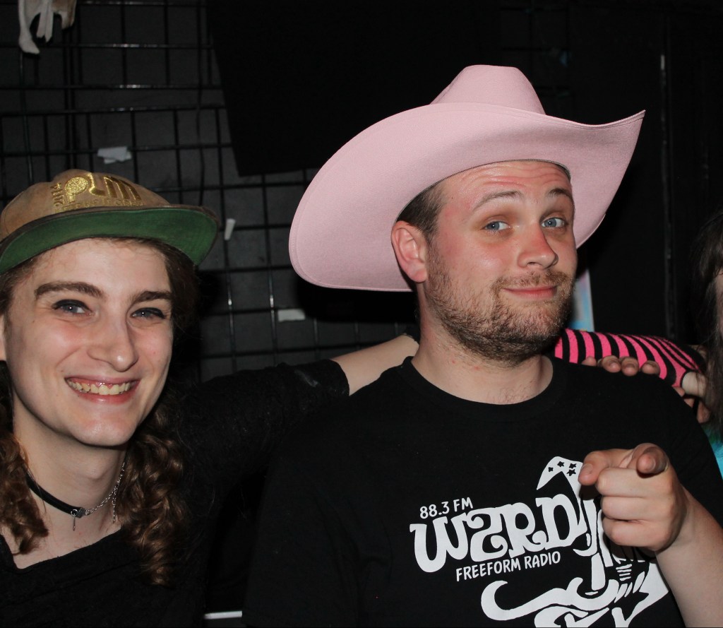 Dale Lehman and Meagan Panici are both wizards for WZRD Chicago, 88.3 FM. During the WZRD’s 50th anniversary celebration, Lehman was passing out color leaflets in support of Palestine. (Photo by C. Schandelmeier).